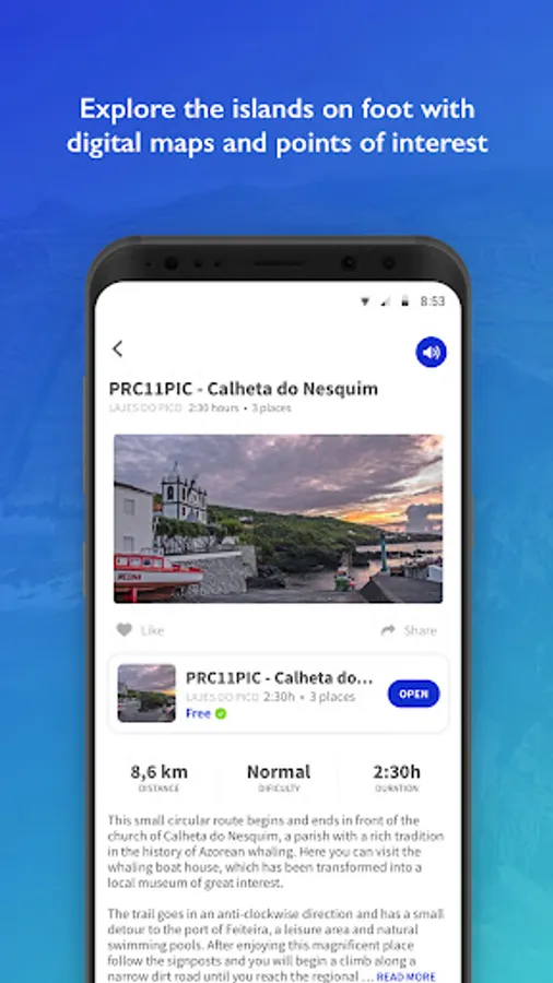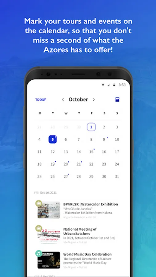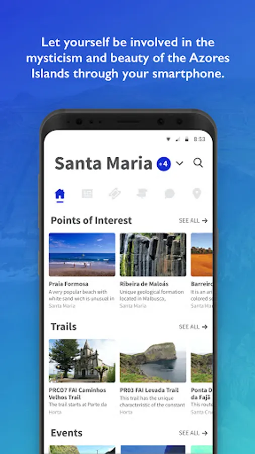 The App provides news and information about events, whether they are generalist contents, cultural, sports, recreational or other events. Events can be georeferenced, appearing on the map of points of interest and associated with the users' calendar.