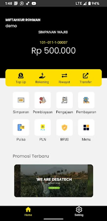 2. Saldo dan Riwayat Transaksi : Anggota dapat melihat saldo tabungan mereka dalam koperasi, serta melihat riwayat transaksi mereka, termasuk setoran, penarikan, dan pembayaran angsuran.