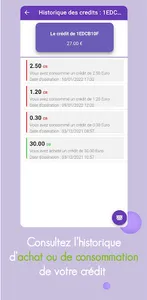 • Consult purchase or credit consumption history