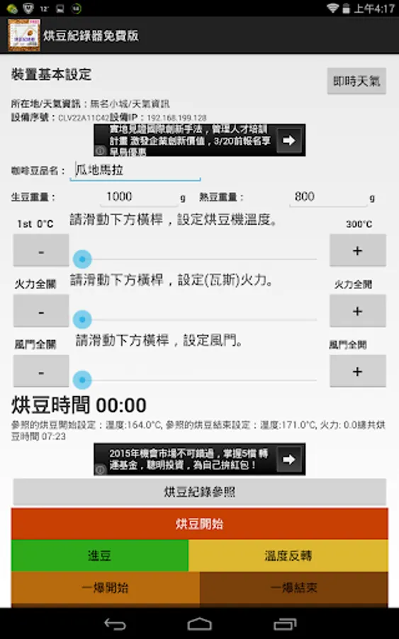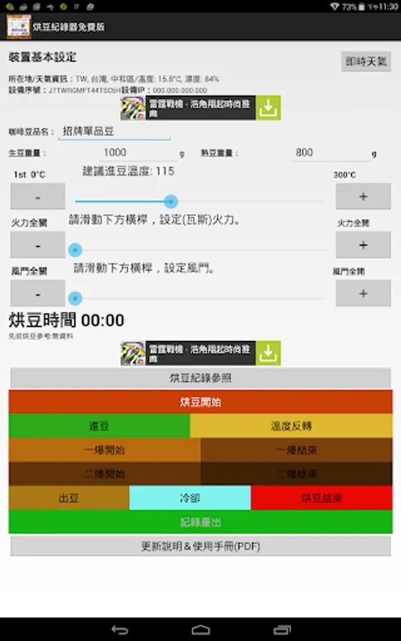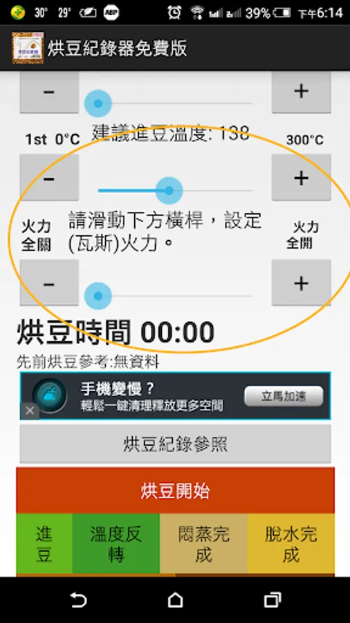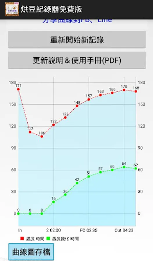 5. 烘焙記錄檔,可記錄烘焙時間、壹組溫度表資訊、火力與風門。