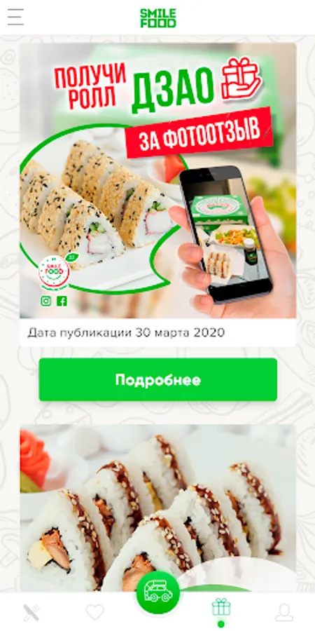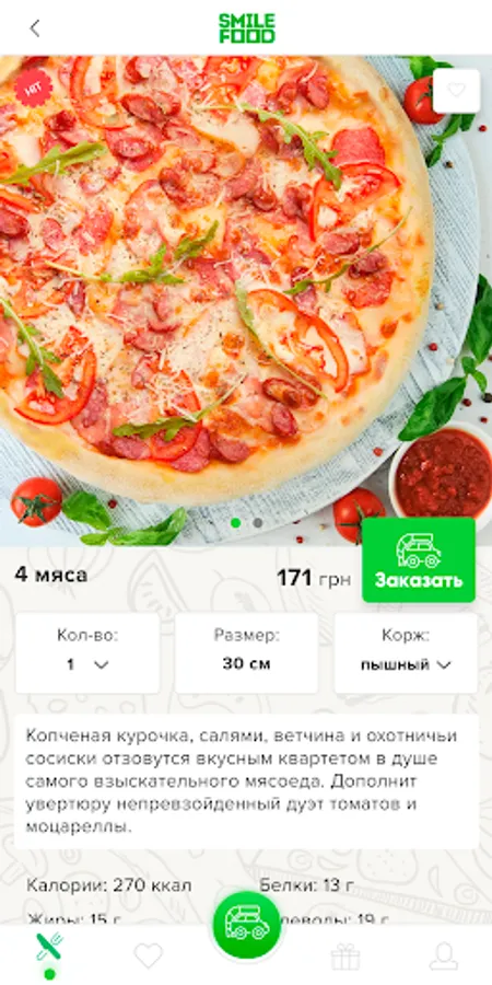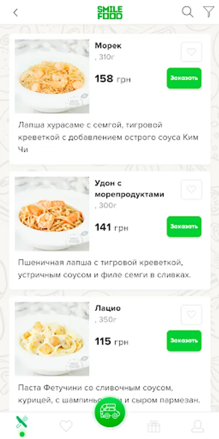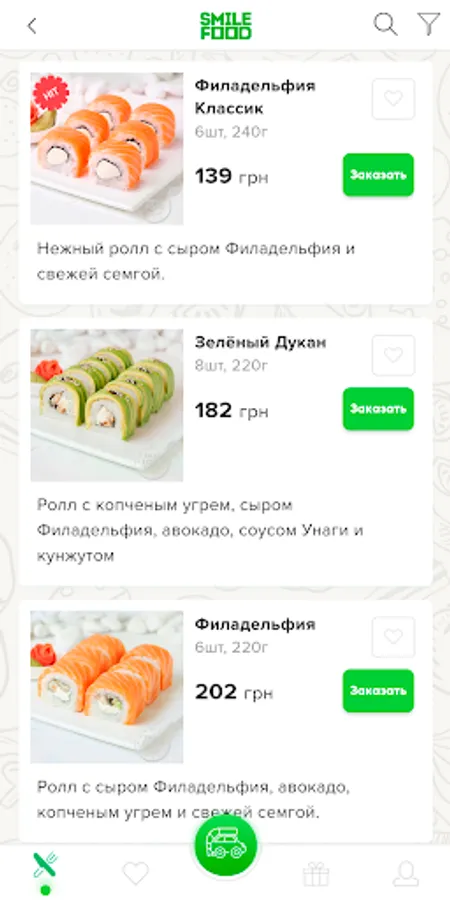 The SMILEFOOD menu offers sushi, rolls, pizza, burgers, noodles and much more. There are also constructors for pizza, rice and noodles. All dishes are prepared from under the knife immediately after receiving the order. The production is certified according to ISO 9001: 2015 and ISO 22000. The order is delivered in eco-packaging according to the stated terms, the appearance and weight of the dishes correspond to those stated on the website or in the application. Delivery is carried out by our own delivery service in 4 cities: Kiev, Odessa, Nikolaev, Kherson.
