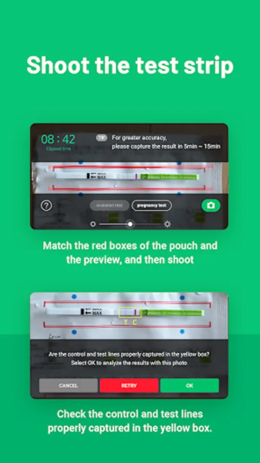 - Ovulation Tests: When you take pictures of our ovulation tests, you get to track the results directly inside this app. Map out your cycles and know exactly when you are ready to conceive.