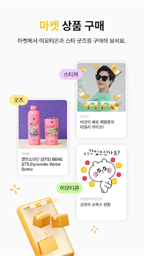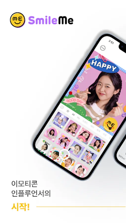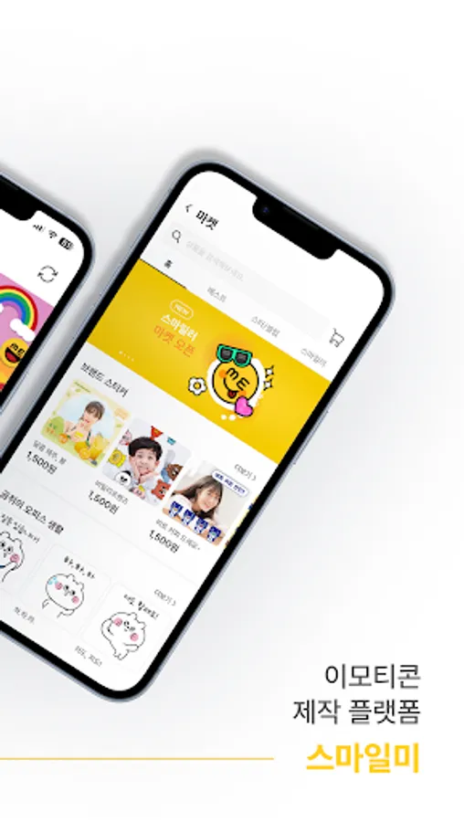 스마일미 마켓에서 스마일러 이모티콘과 K-POP 스타