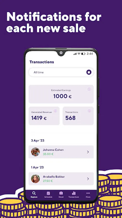 Track your earnings over time and receive live updates whenever you sell a photoshoot.