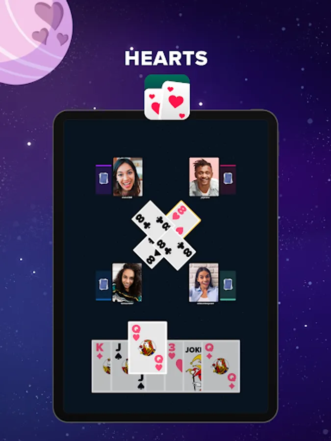 • HEARTS - The classic card game where you can break hearts, and shoot the moon! Hearts is a fan favorite for a reason.