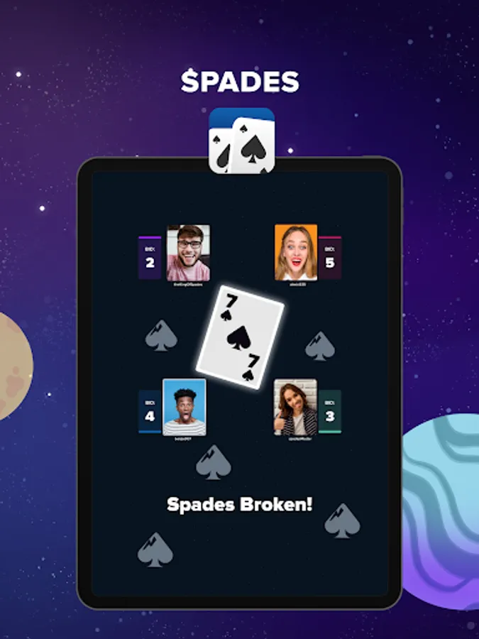 • SPADES - The classic team-based card game. Team up and try using telepathy to communicate with your partner without alerting your opponents. Get ready to take tricks, but be sure not to take too many bags! Any fan of Spades should check this out!