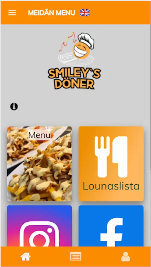 Smiley's Döner ravintola-applikaation käyttöliittymä on helppokäyttöinen ja sen valikko on selkeä sekä