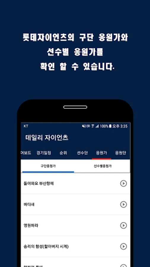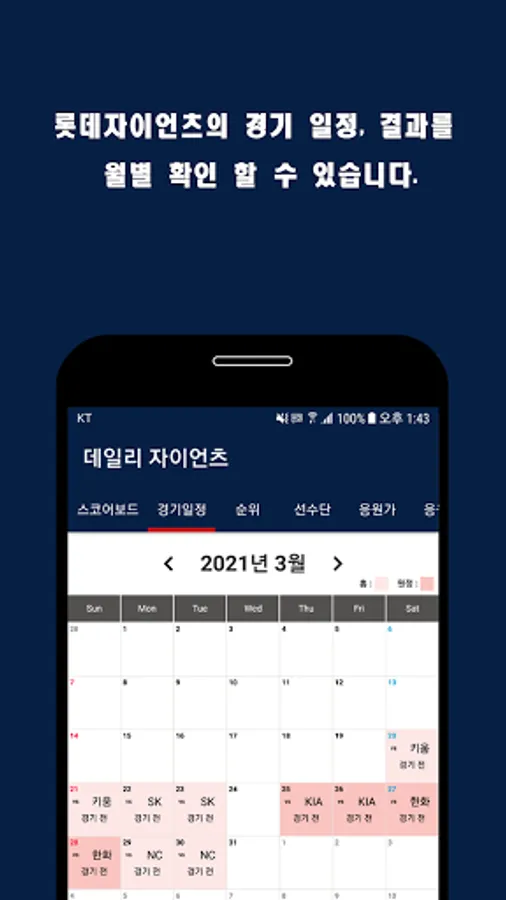 Day Competitions Lotte by the developer of the Lotte Giants fan needed, game schedules, team standings,