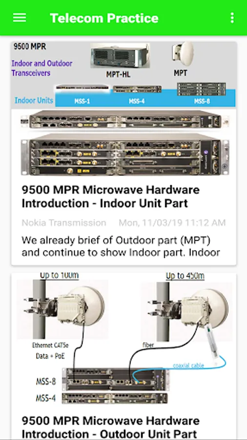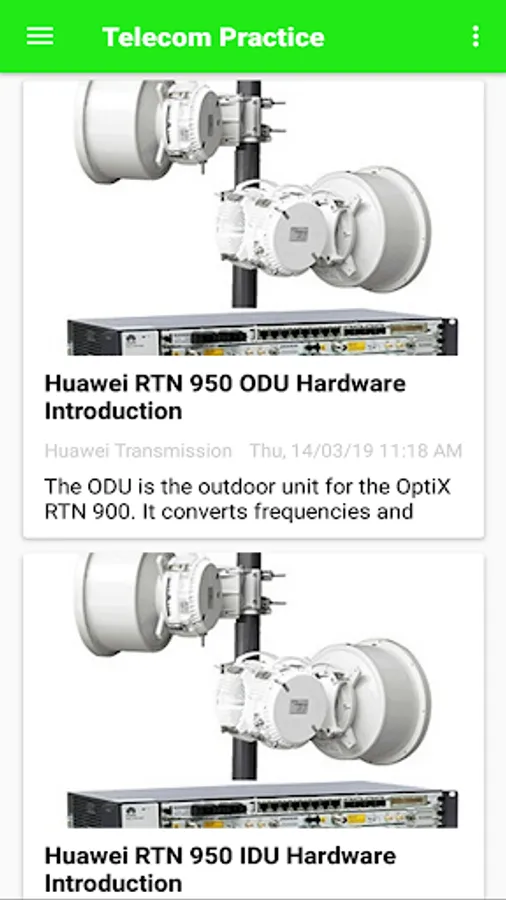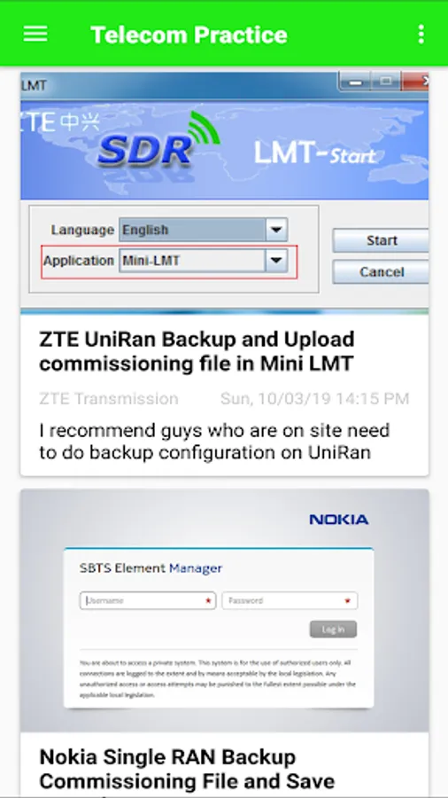 Telecom Practice is a guide to find some solutions that we used to solve in our experience. Our apps for telecom maintenance includes Nokia product (SRAN,SMFS, MPR, SAR08, SARM,...), ZTE (UNIRAN, ZMW,...), HUAWEI (EGBTS, RTN910, RTN950,...) and power supply equipment (Rectifier, Eltek, Power One, Solar Controller Kyocera, BP,..).