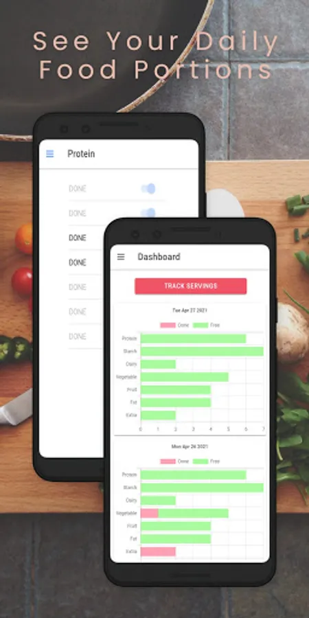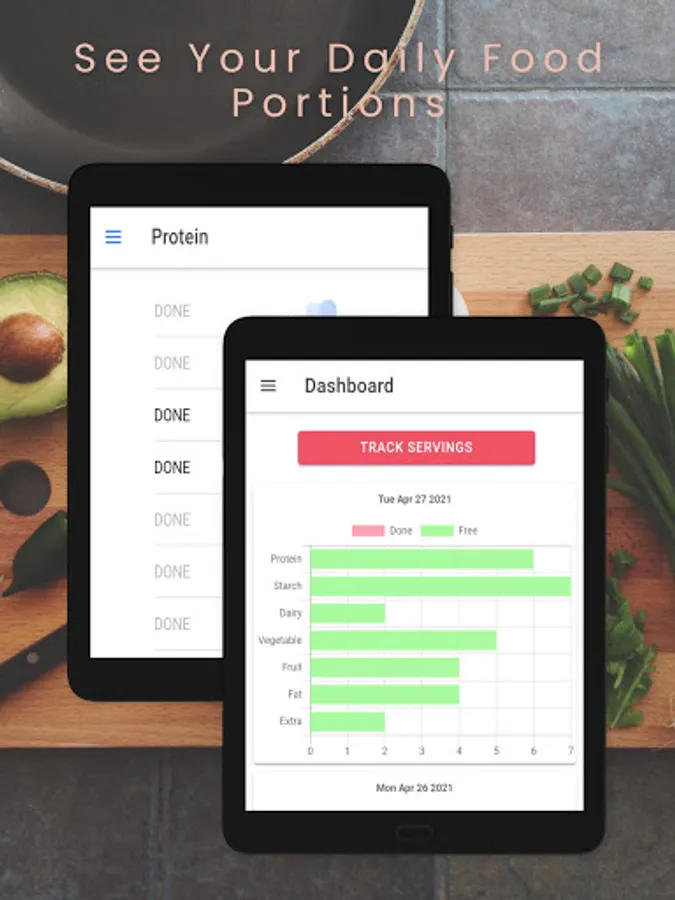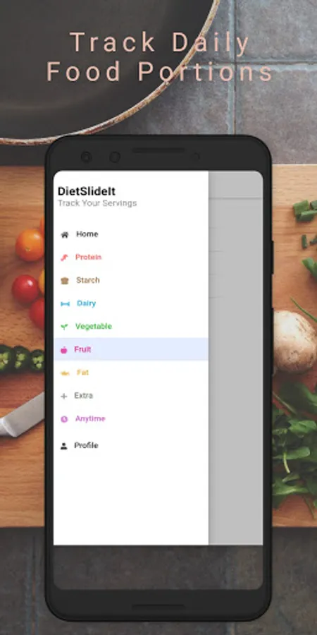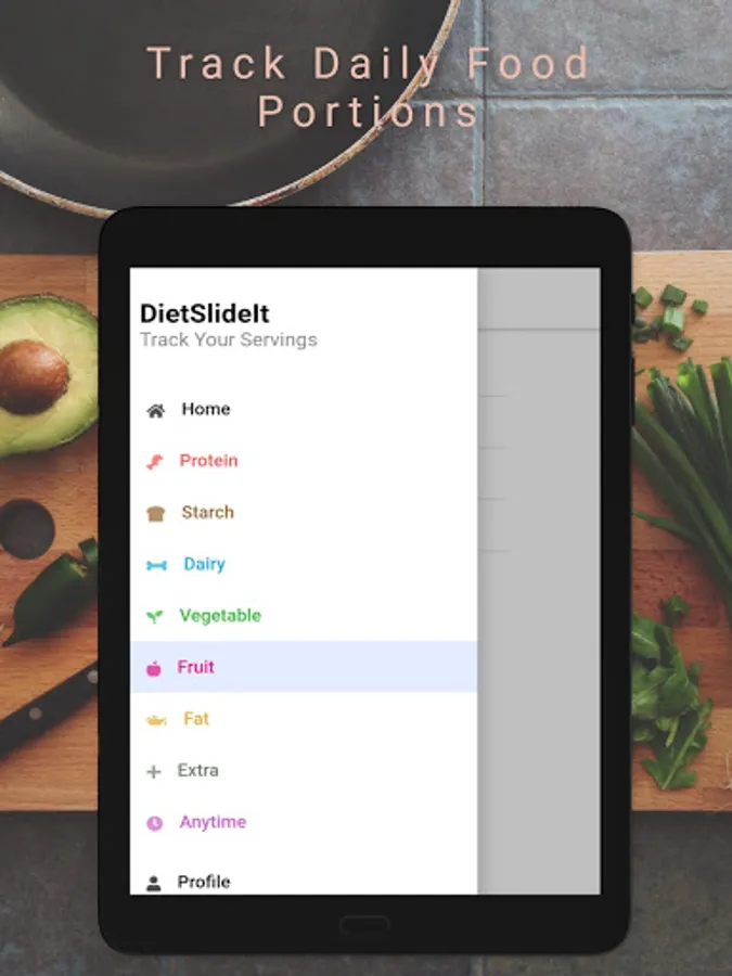 DietSlideIt will help you track your serving portions, of different kinds of major food types.
