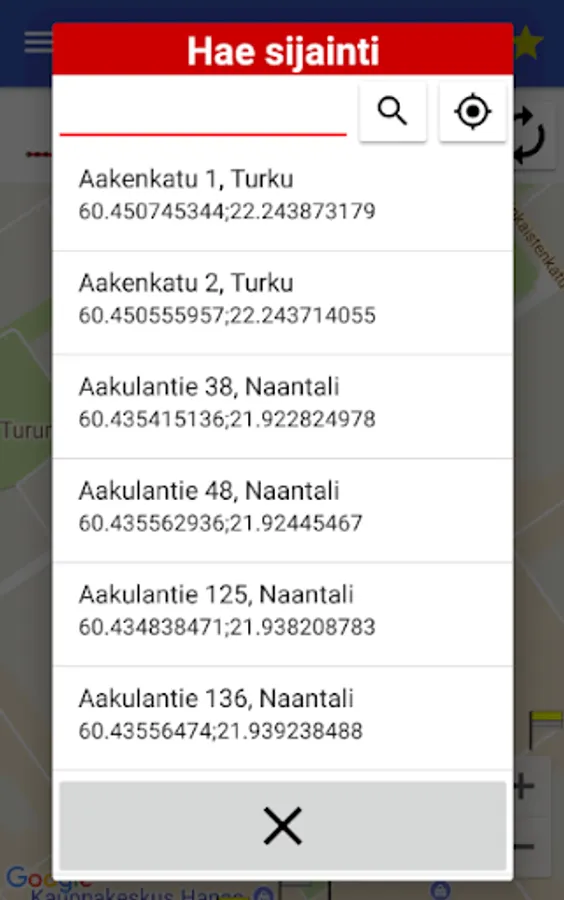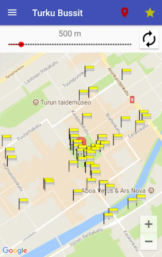 Find the nearest bus stops and city bike locations according to your location in Turku.