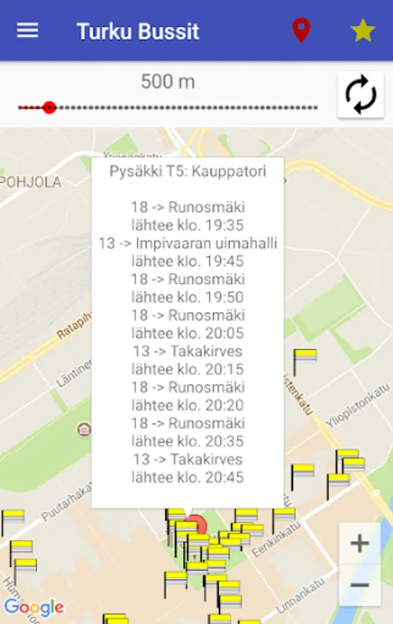 - Find stops with adjustable range from your own location.