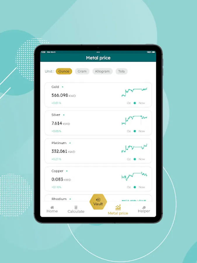 • Gives spot gold price in USD and KWD.