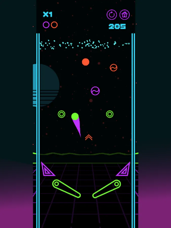 Watch out! Various moving, bouncing, and exploding hazards make reaching the next level a challenge! Come back and play again to explore more randomized levels, gain a score multiplier or bonus pinballs to top and share your high score!