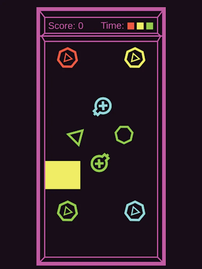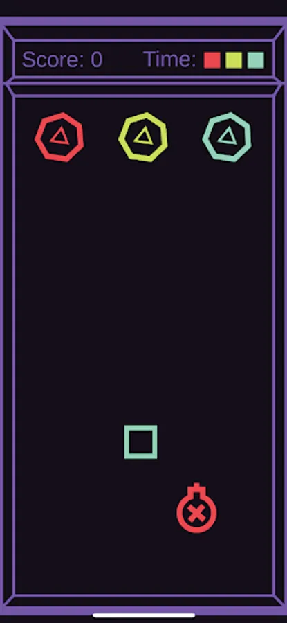 Match shapes by color. But be careful; make sure to avoid bombs and the walls! Challenge yourself to improve your reflexes and beat your high score!