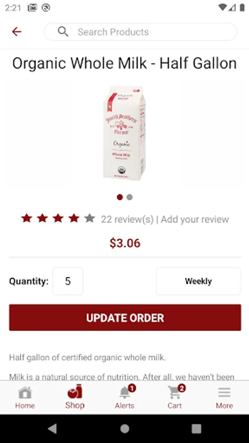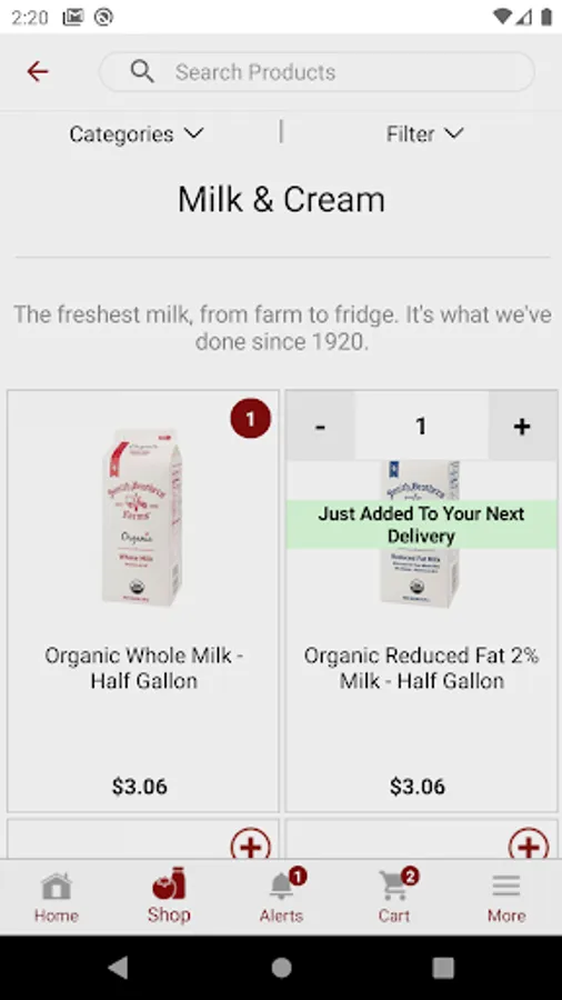 The Smith Brothers Farms app lets you browse our catalog, add products to your order, and manage upcoming deliveries to optimize your weekly grocery needs.