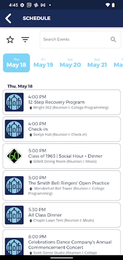 The Smith College Reunion app is your one-stop shop for the Reunion Schedule, class-specific events, speaker information, FAQs, and more!