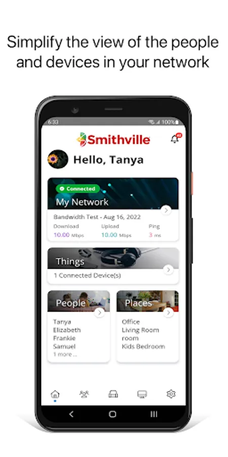 Customize your home Wi-Fi experience with Smithville CommandIQ. From utilizing parental controls, preventing unwanted content, to prioritizing devices, you create a unique home experience. Protect your home with network security, password, and SSID management.