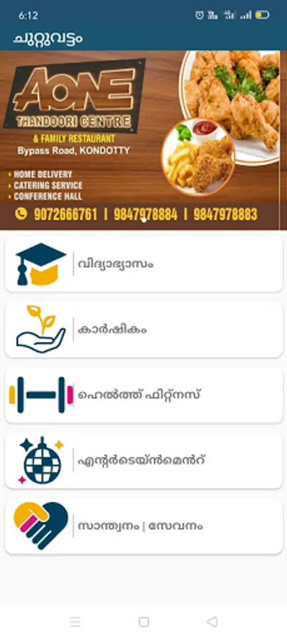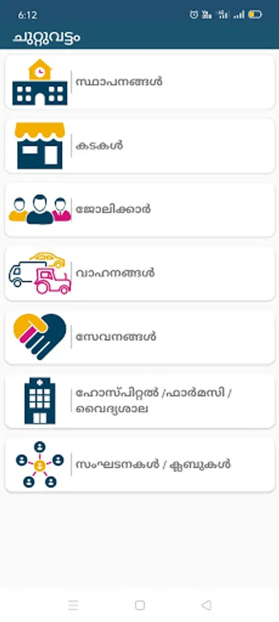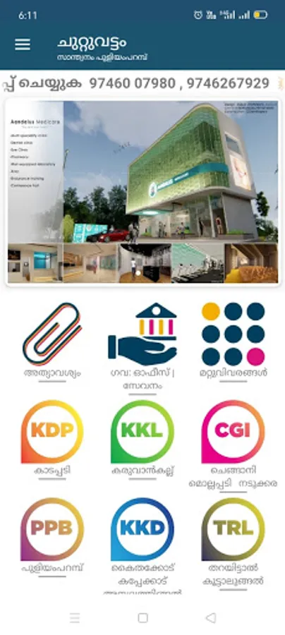 Chuttuvattom app now gives you phone numbers, whatsapp contacts etc of shops, labourers, institutions, taxies, vehicles, services, hospitals etc.