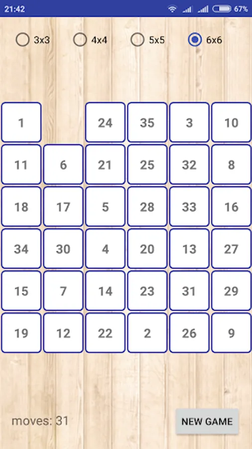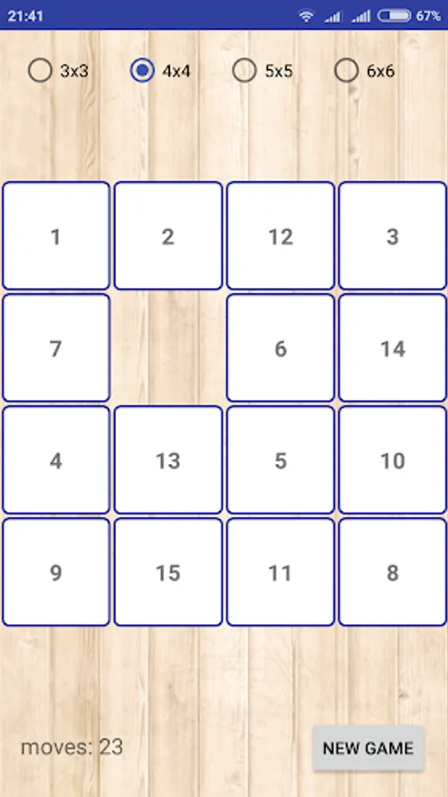 The 15-puzzle (also called Gem Puzzle, Boss Puzzle, Game of Fifteen, Mystic Square and many others) is a sliding puzzle that consists of a frame of numbered square tiles in random order with one tile missing. The puzzle also exists in other sizes, particularly the smaller 8-puzzle. The object of the puzzle is to place the tiles in order by making sliding moves that use the empty space.