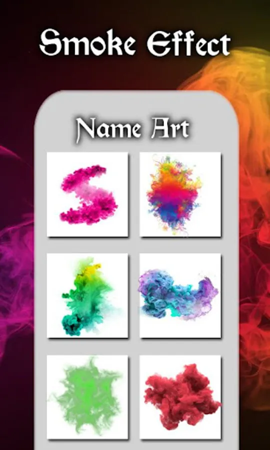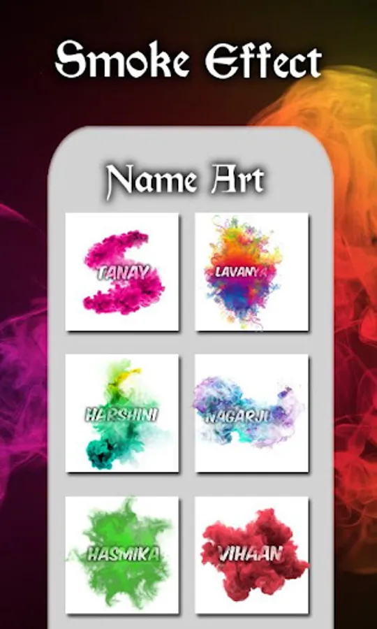 This Smoke Effect Name art Pro is free to download app. You just need to install this app in your mobile and select the Smoke effect of your choice from the list of Smoke effects provided. Write the name of the person you wish to. You have option to increase the font, color it and provide various effects. You can also change the Smoke effect. Save it and use it