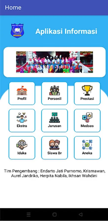 This application contains: Profile, Personnel, Achievements, Extras, Majors, Social Media, Iduka, New Students, Miscellaneous.