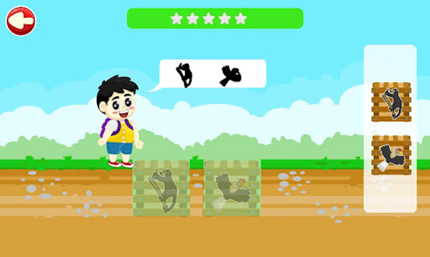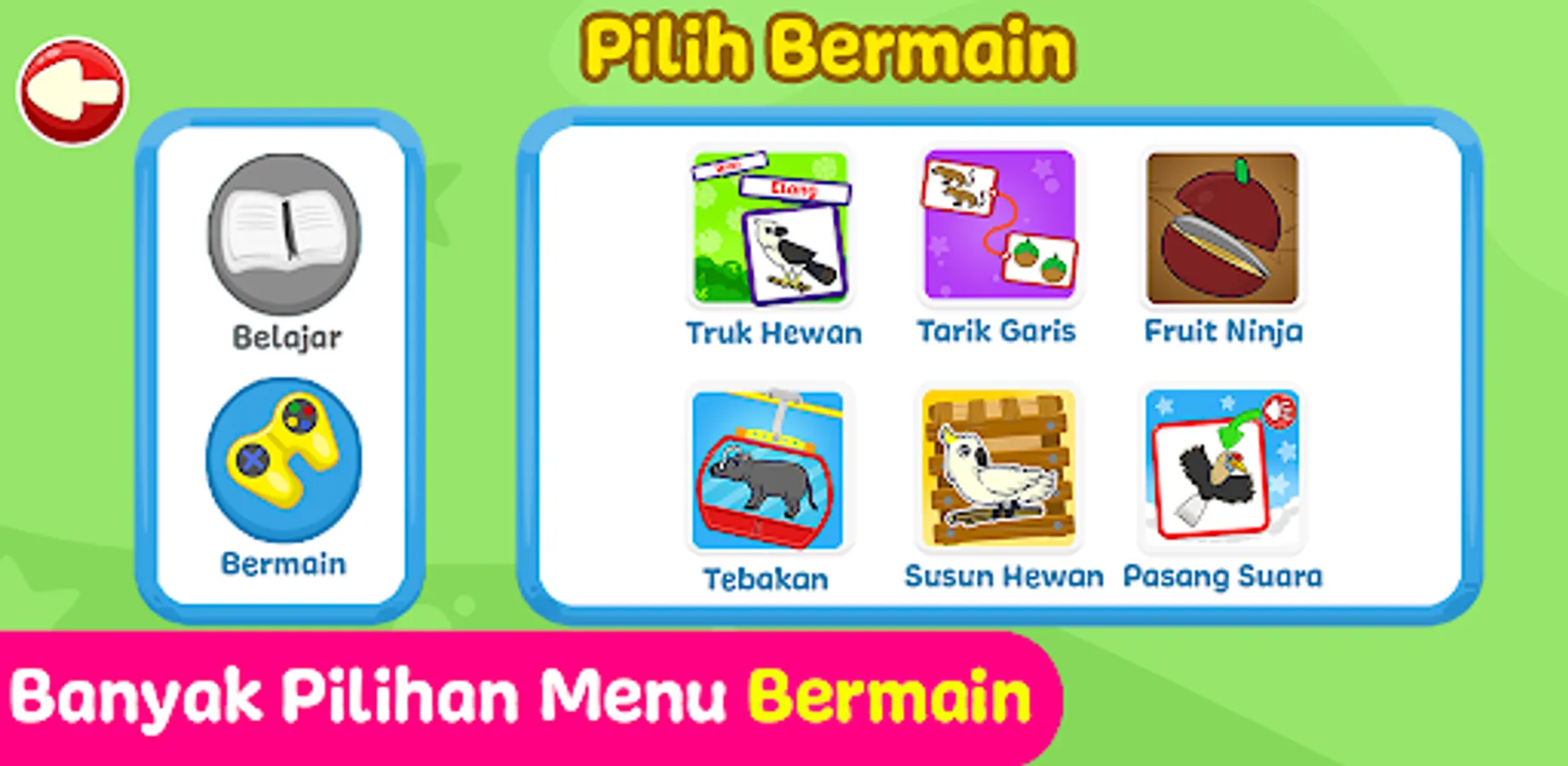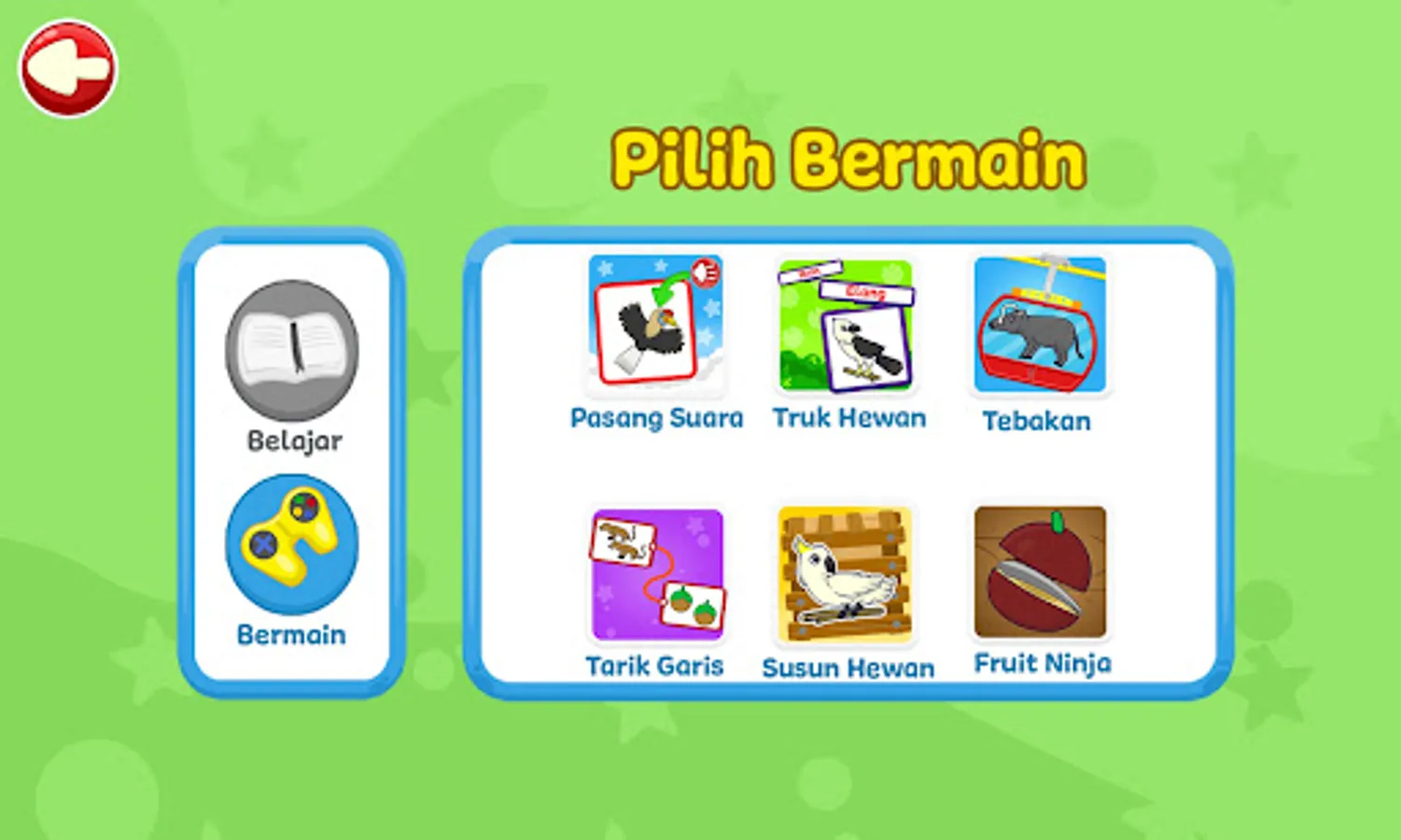 In this game, children will learn about the names of animals in Sulawesi, complete with their sounds and pictures. The concept of learning in this application is designed interactively with interesting games and interesting sounds so that children don't get bored while playing.