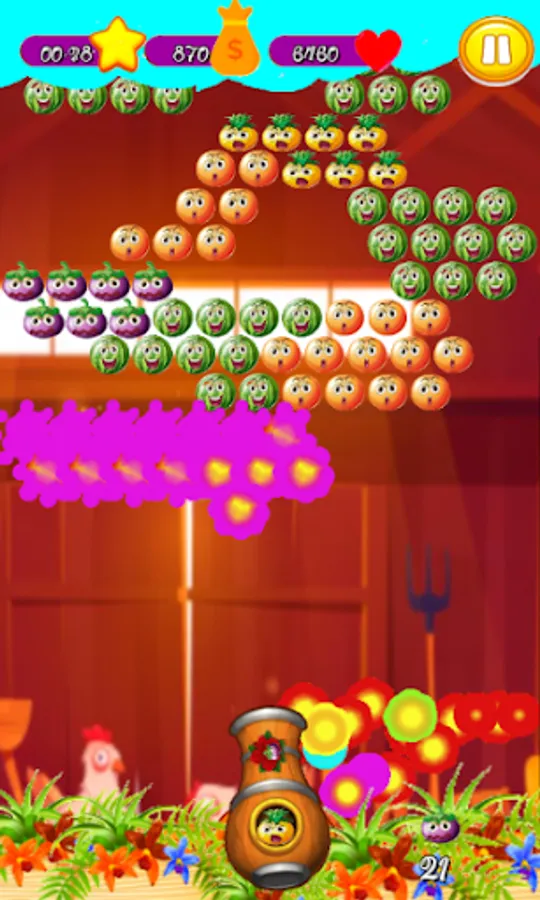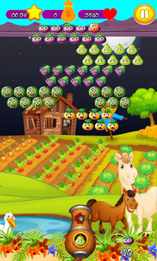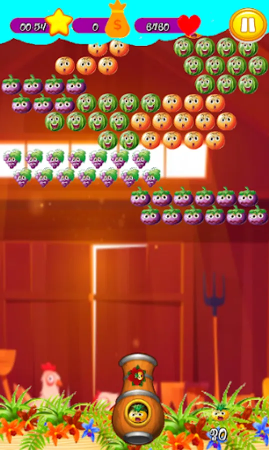 Super Farme - Fruit Shooter Bubble is a bubbles shooting game that teaches you a challenge, you need to create groups of 3 bubbles to make them explode and win, clear all bubbles to go to the next level.