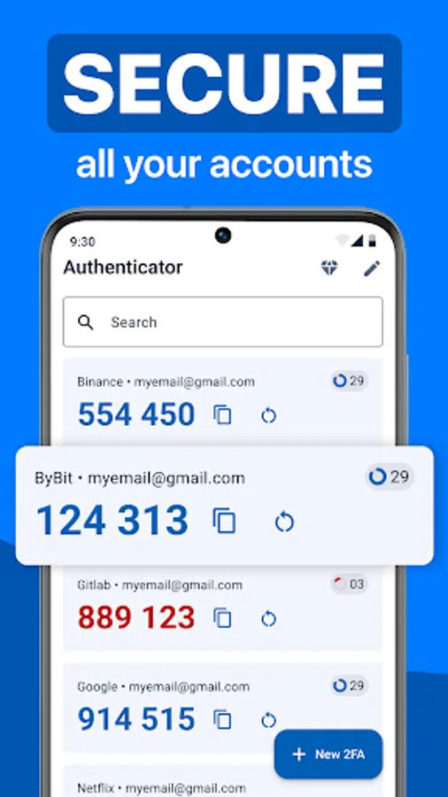 Authenticator app store and generate secure 2FA (two-factor auth) tokens for your online accounts on your device. Best 2FA Authenticator App is a simple and free application for Two Factor Authentication (2FA) which generates Time-based One-time Passwords (TOTP). Mfa Authenticator app tool helps you protect your account from hackers by adding an additional layer of security. With the 2FA Backup system, you can store all your keys in the cloud and access them when needed. In case you lose or damage your phone, you simply install Authenticator apps on your new device to get access to your Keys. For your convenience, you can either use a QR Code or enter your secret key manually.