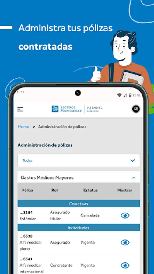 My SMNYL Clients is the mobile application of Seguros Monterrey New York Life that will allow you to see essential information about your life insurance and Major Medical Expenses.