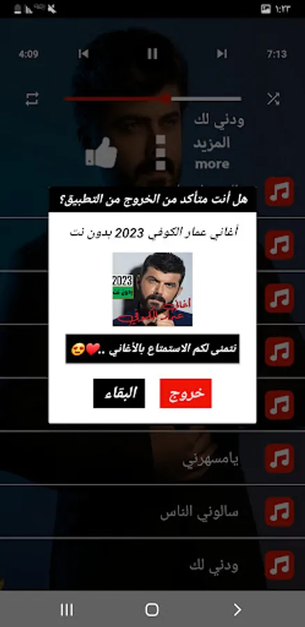 The application contains the best songs of Ammar Al-Kufi 2023 without the net