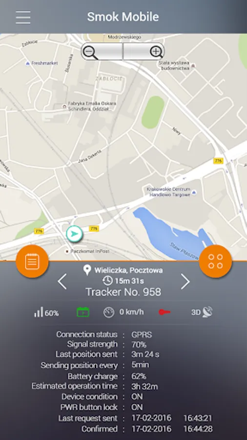 The Application is used to monitor the geoposition, operating parameters and sensor statuses of vehicles and objects equipped with SMOK GPS devices. It displays the location of vehicles and objects on maps and their current operating parameters. The access to the application requires an active customers account with the SMOK monitoring system. To activate your access account please contact our customer service department.