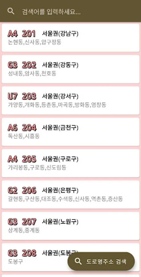 This is a program that provides branch code information of Rosen Courier branches nationwide. (As of August 24, 2022, 342 branches)