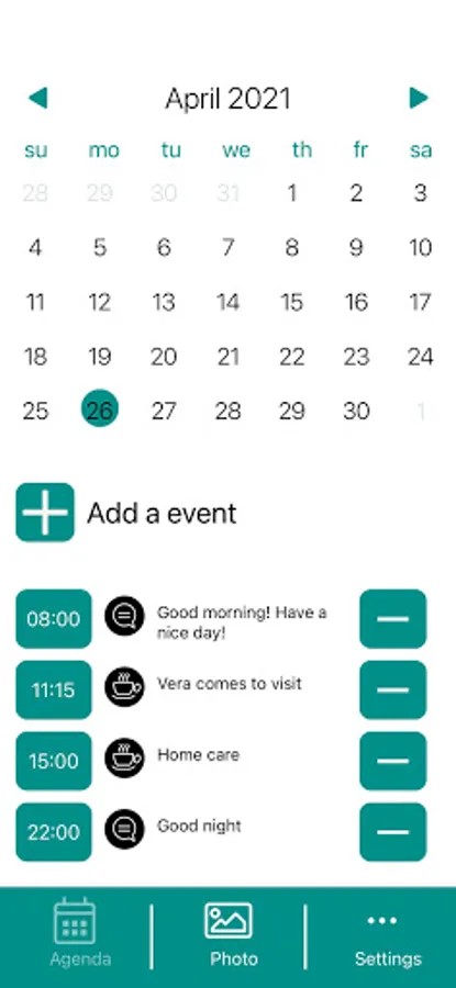 With the Clockaid Dashboard app you can easily manage the Clockaid clocks. Via the app you have access to functionalities such as calendar editing, sending messages, placing photos and video calling (if available)