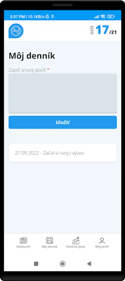 The app works as a quit calendar. It accompanies the smoker for 21 days on his journey.