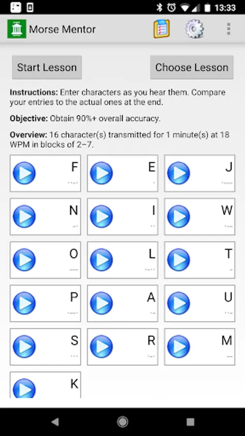 * Intuitive keyboard with all the characters covered in the lessons, including prosigns.
