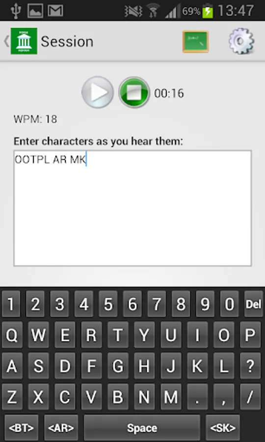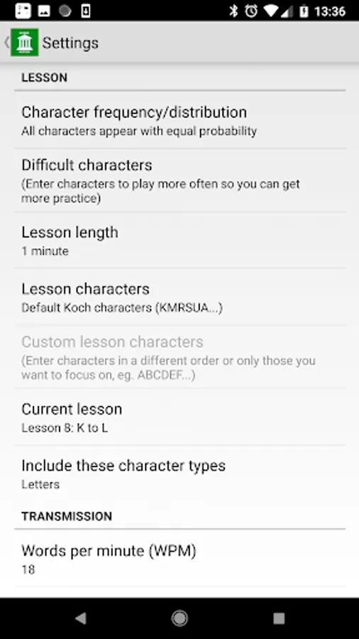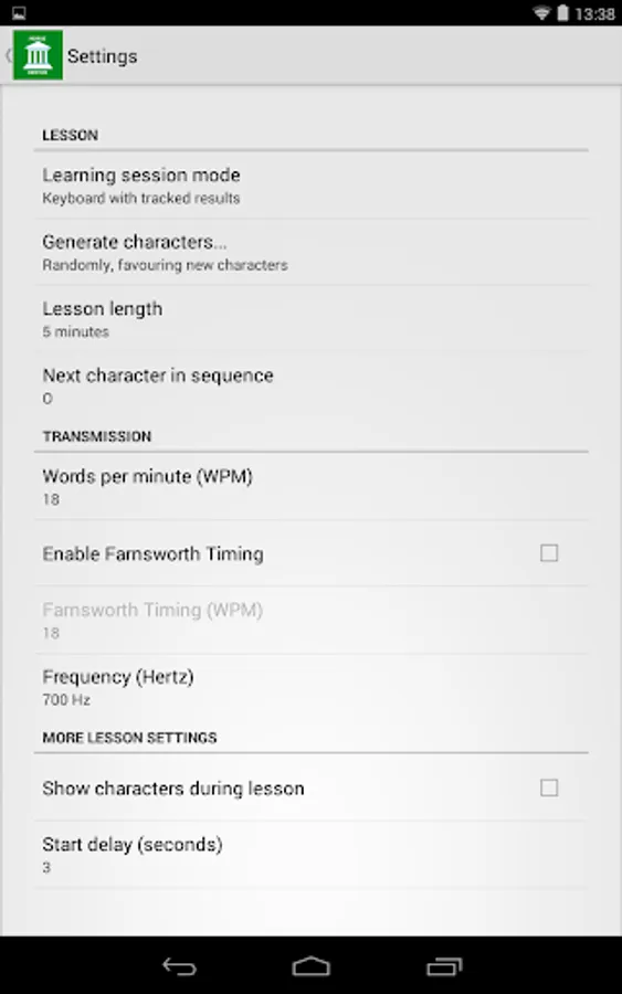 * Choose the session duration, which character is next in sequence, WPM, different tone frequencies and more.