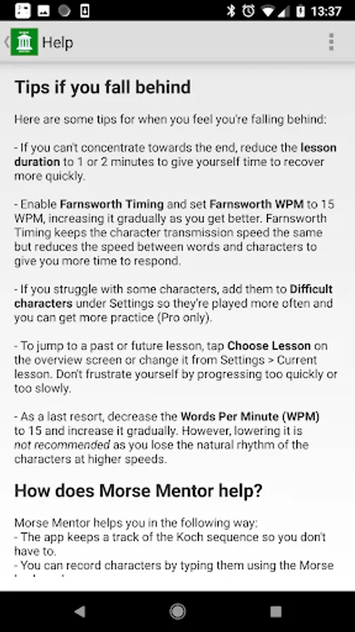 ★Note★ You need version Morse Mentor 1.4 or above to unlock pro features.