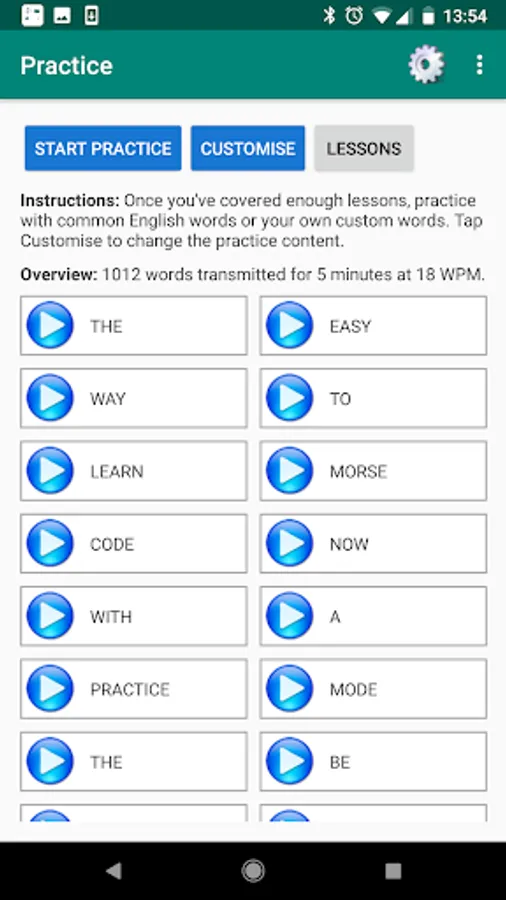 A Practice mode allows you to practise with the 1000 most common English words, CW abbreviations and call signs or your own custom words and sentences so you can improve your skills.