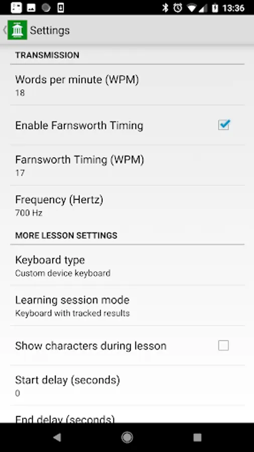 * Farnsworth timing to slow down effective playing speed without slowing down character speeds (aligned to ARRL recommendations that preserves spacing ratios)