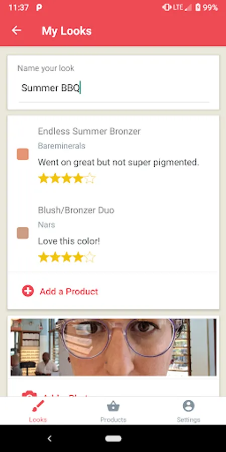 * Keep track of the make up looks you create and the products you use