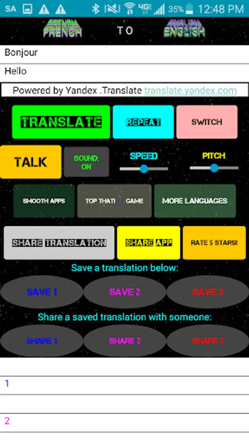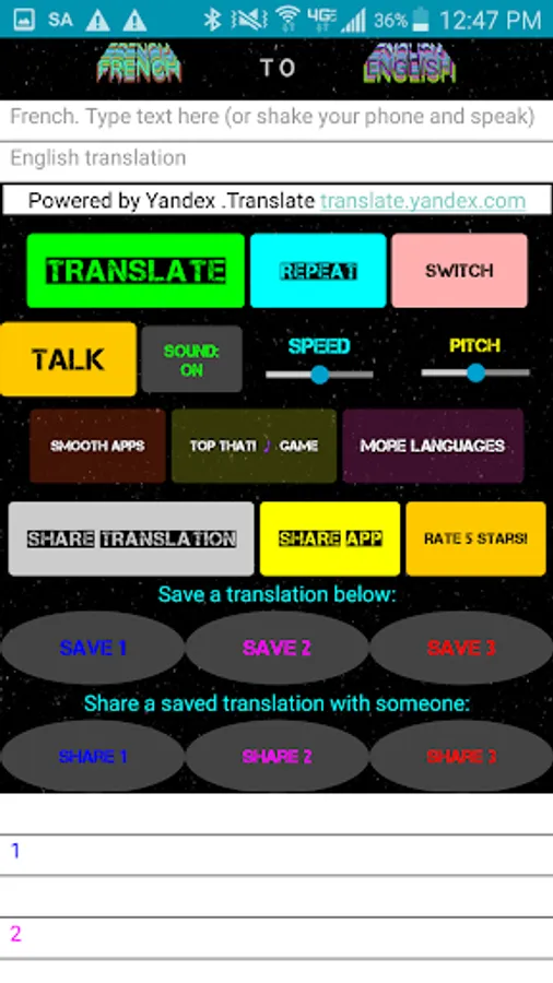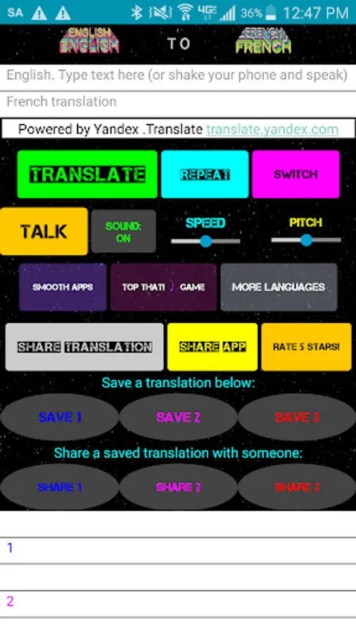 Type the text and press 'TRANSLATE', or just shake your phone and speak. The app will automatically translate the text and speak the translation back to you.