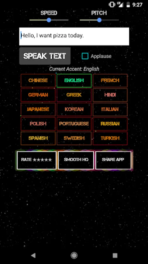 Smooth Text to Speech is a simple to use text-to-speech app, includes 15 Accents. You can easily change the pitch, and speed of the voice.