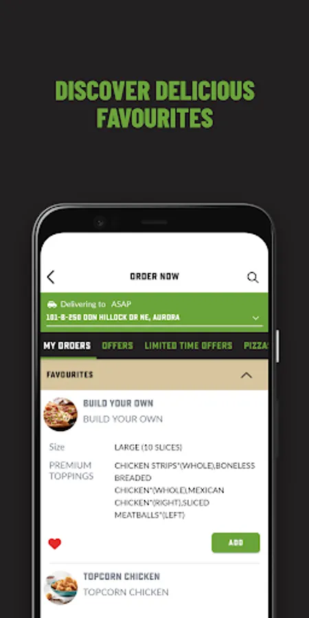 Created an order that’s just right? No need to remember what you did, just save it to your favourite orders to easily recall for next time! Save time by creating custom favourite orders! Whether enjoying pizza with your kids, your friends, or on your own, have the order that suits all your needs ready to go with a few easy clicks.