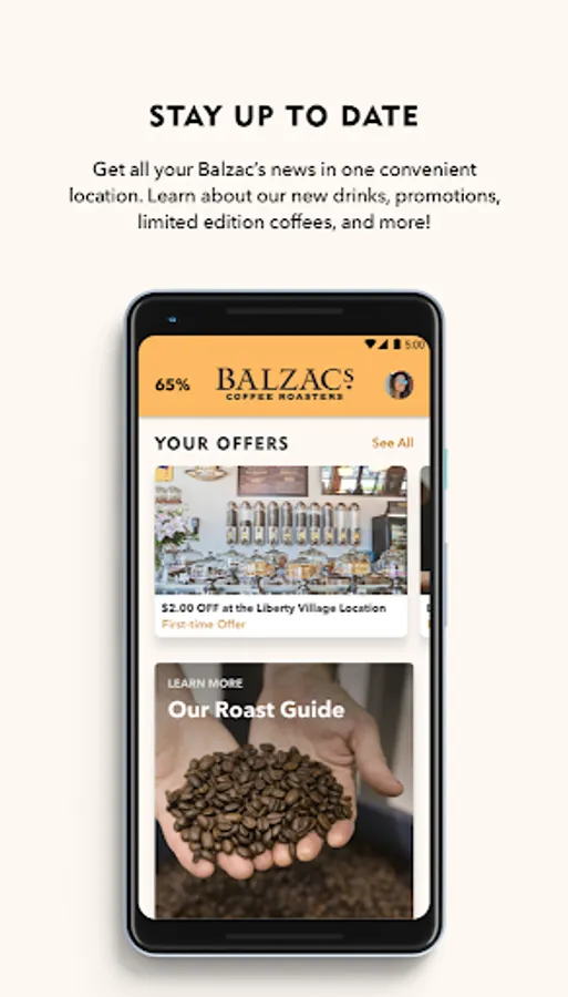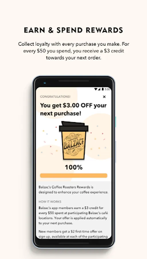 Earn loyalty points with every order ahead and scan to pay purchases using the Balzac's app. You'll collect 10 points for every dollar you spend. Use those points to redeem free items!