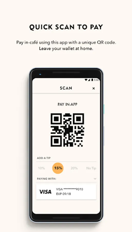 Pay in-café using this app with a unique QR code. Leave your wallet at home.