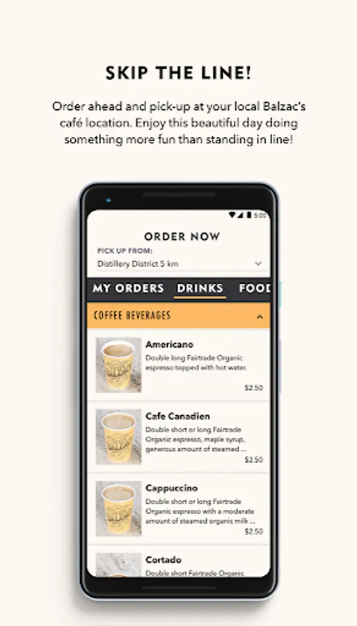 The Balzac’s app is an easy way to skip the line and order ahead or to pay in-café at the register. Plus, earn rewards with every purchase!