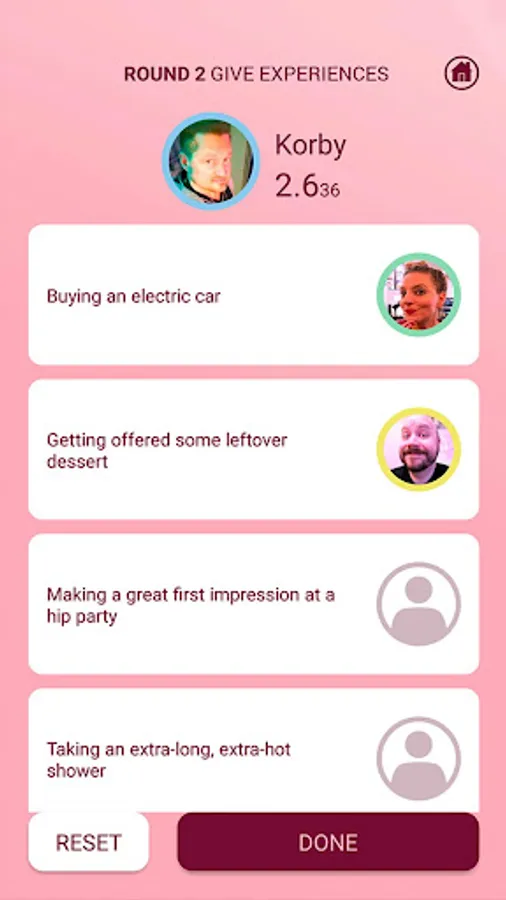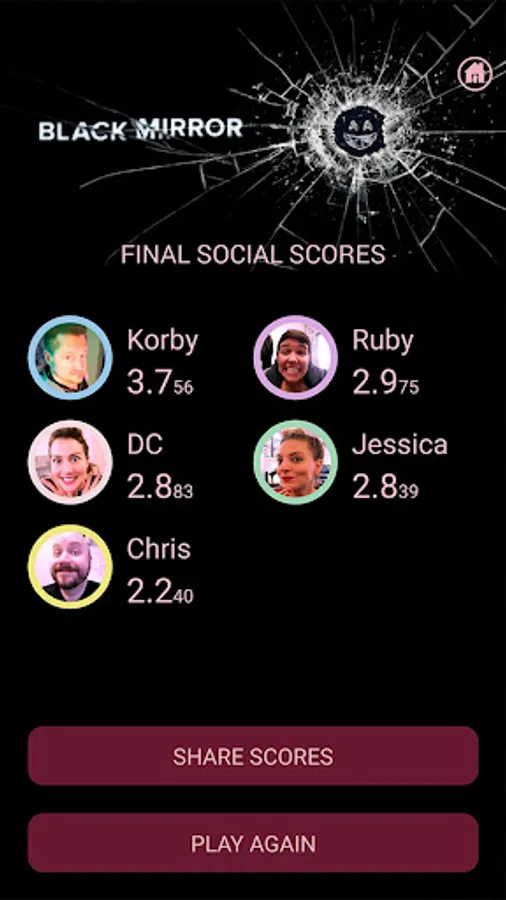 The digital component of the social-interaction board game NOSEDIVE, which allows players to select Experiences for each other that can raise or lower their Social Score.