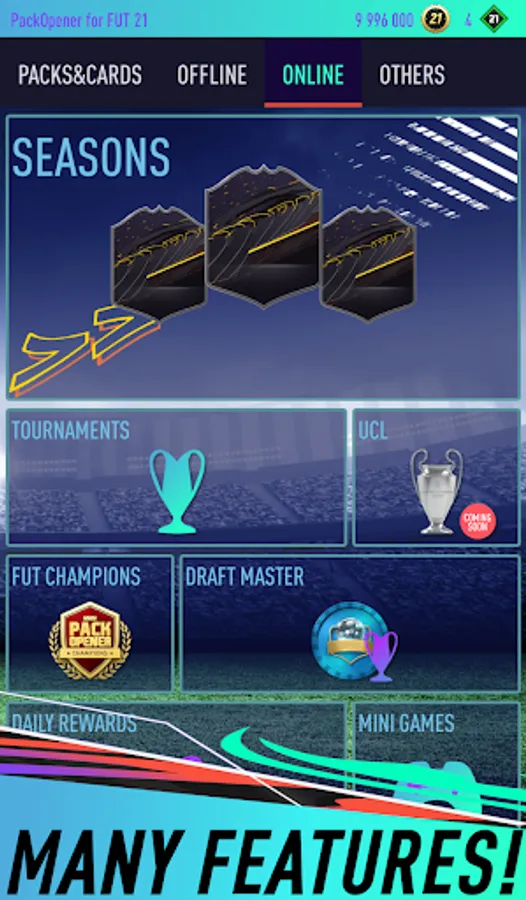 Open packs and collect all the cards! Open the best pack, build an ultimate Draft, complete Squad Building Challenges and play online tournaments.