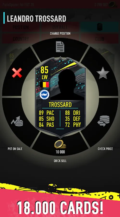 You can open unlimited number of packs. Will you have the best squad and win matches against your friends or will you rather become rich by putting players on the transfer market?